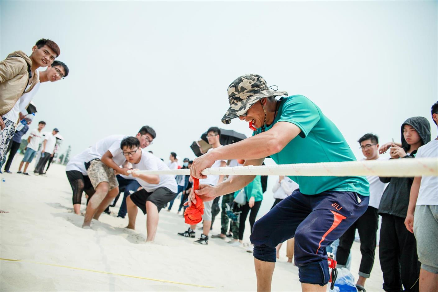沙滩排球比赛现场,队员们快攻、扣杀、扑救,一连串的专业技巧组成了沙滩排球的活力运动世界!气氛好不热闹。拔河比赛开始后场面由低潮转向高潮,同学们的欢呼声,跺脚声融成一片。两参赛队力气比拼,个个使出九牛二虎之力,不知是谁的肩旁挨着谁的,谁的脚又踩在了谁的白色帆布运动鞋上面。