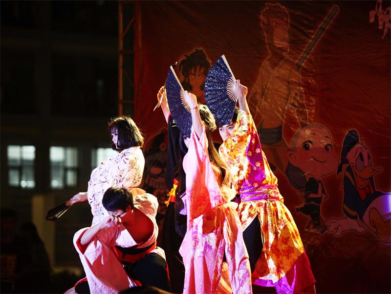 活力四射的舞者,沸腾的音乐,宅舞《No brand girl》点燃了晚会的激情火焰,拉开了动漫晚会的序幕,随后各种节目轮番登场,精彩纷呈。《动画音乐主题曲串烧》、《海贼王》用美妙歌声带我们走进了精彩的动画世界;短剧《葫芦娃大展金刚侠》、《山寨版三打白骨精》让我们瞬间回到了童年时代,小品《没事打扰一下》里的动物相亲大会妙趣横生,笑点不断,cosplay《冰雪奇缘》、舞蹈《千本樱》与卡通秀《漫梦飞扬》把一个个动漫人物带到了现实世界中;特邀嘉宾《“壹杰”魔术表演》更是把我们带到了梦幻的情境中。