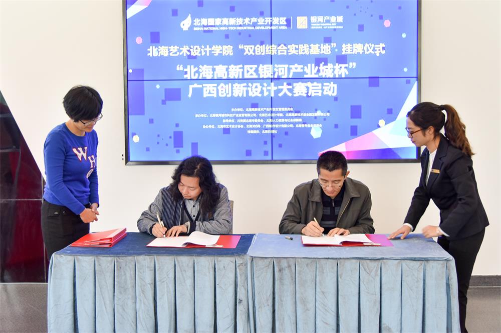 与此同时,由双方首次合作并精心筹备的“北海高新区银河产业城杯”广西创新设计大赛也正式宣布启动,拉开了我院与北海高新区政校企全面合作的序幕。