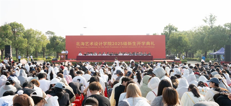 10月11日上午,我校2025级新生开学典礼于园博园校区蓝天白云广场顺利举行。北海市人民政府副市长鲁性东;全国人大常委、教育部本科教学指导委员会副主任、广西教育协会书法教育协会理事长、原广西艺术学院院长郑军里;清华大学美术学院院长,中国工艺美术协会副会长马赛;清华大学学术委员会副主任,原中国服装设计师协会主席,原清华大学美术学院党委书记、院长,北海艺术设计学院顾问委员会副主任李当岐;中国服装设计师协会监事会主席,原北京服装学院院长,北海艺术设计学院顾问委员会副主任刘元风;北京市第十五届人大代表,北京宏福集团创始人、董事长,北京邮电大学宏福校区总负责人黄福水,来我校交流的英国切斯特大学国际事务副校长兼艺术、人文与社会科学学院执行院长大卫·麦格拉维,日本武蔵野美术大学教授,日本著名生成AI人工智能设计师、舞台映像艺术设计师,中国中央电视台特邀艺术顾问大野一興;匈牙利佩奇大学正教授,美国丹佛大都会大学建筑专业学科带头人阿科斯·胡特尔;荷兰阿姆斯特丹自由大学人工智能系终身教授,欧洲人工智能研究院院长黄智生;日本文化学园大学教授,日本色彩学会会员,北海艺术设计学院特聘教授田森恭子;日本东京工艺大学教授、日本著名摄影师高崎勉;匈牙利佩奇大学副教授,布达佩斯城市大学客座教授埃里卡·沃罗斯;广西艺术学院中国画学院/漓江画派学院国画系主任、中国美术家协会会员魏恕;国家一级导演、著名编导、北海艺术设计学院舞蹈学院院长吴明奇;北海银滩开发投资股份有限公司总经理李芳;北海市教育局副局长蒋迎春;学校党政领导出席此次开学典礼,有关职能部门负责人、各二级学院负责人、教师代表和2025级3800余名新生参加典礼。