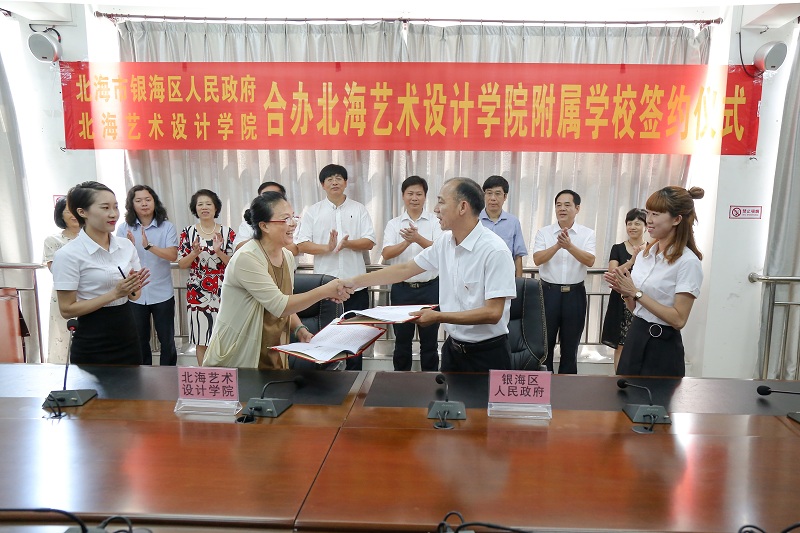 2017年9月2日上午9:30,在北海市银海区人民政府四楼会议室,举行银海区人民政府与我院合办北海艺术设计学院附属学校签约仪式。北海市教育局局长叶宗沛,银海区区长梁田等四家班子领导,我院执行董事郑超、党委书记贺争平、常务副院长张建虹等学院主要领导出席了签约仪式。