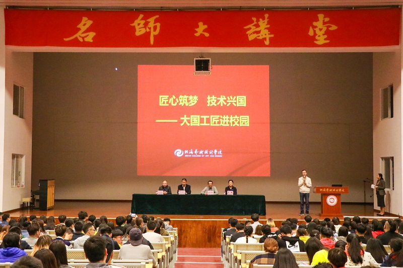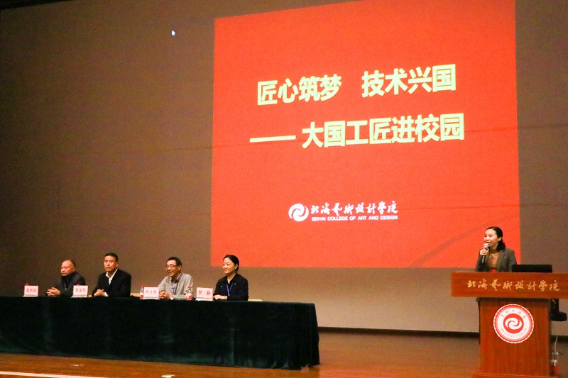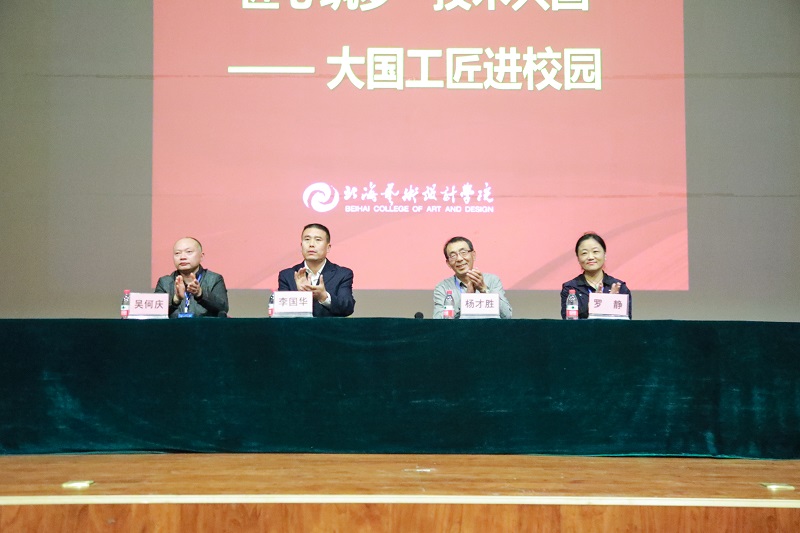 为了更好的培育学生精益求精的工匠精神,2017年12月7日晚上7:30 由北海艺术设计学院和北海市人社局共同举办的“大国工匠进校园”活动在学院大礼堂举行。本次活动邀请了杨才胜大师、李国华大师、罗静大师、吴何庆大师。活动由学院宣传部部长、团委副书记文春明主持。