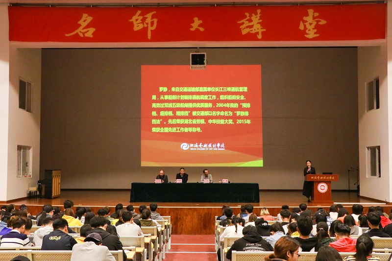 罗静大师分享了自己以往任职的经历,从幼儿园教师到包装印刷工业务员,最后进入长江三峡通航管理局工作。通过事例表达自己对成功的理解:“起点的高低与成功无关,珍惜时间努力工作,付出才有回报”,鼓励的话语燃起了青春的进取之心,引发了现场师生强烈的情感共鸣。
