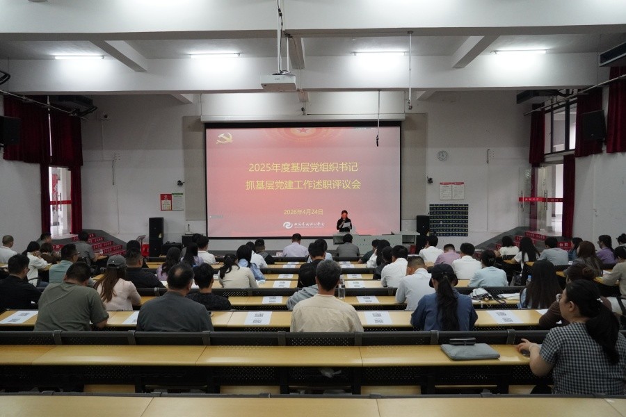 4月24日,学校召开2025年度基层党组织书记抓基层党建工作述职评议会,党委书记覃宪儒作点评讲话,党委副书记陈毅华主持会议。