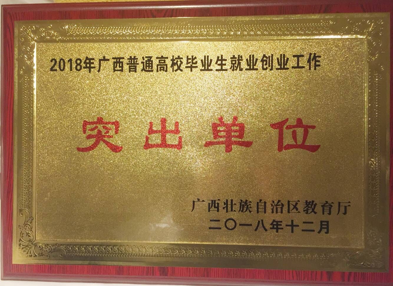 我校荣获“2018年度全区普通高校毕业生就业创业工作突出单位”