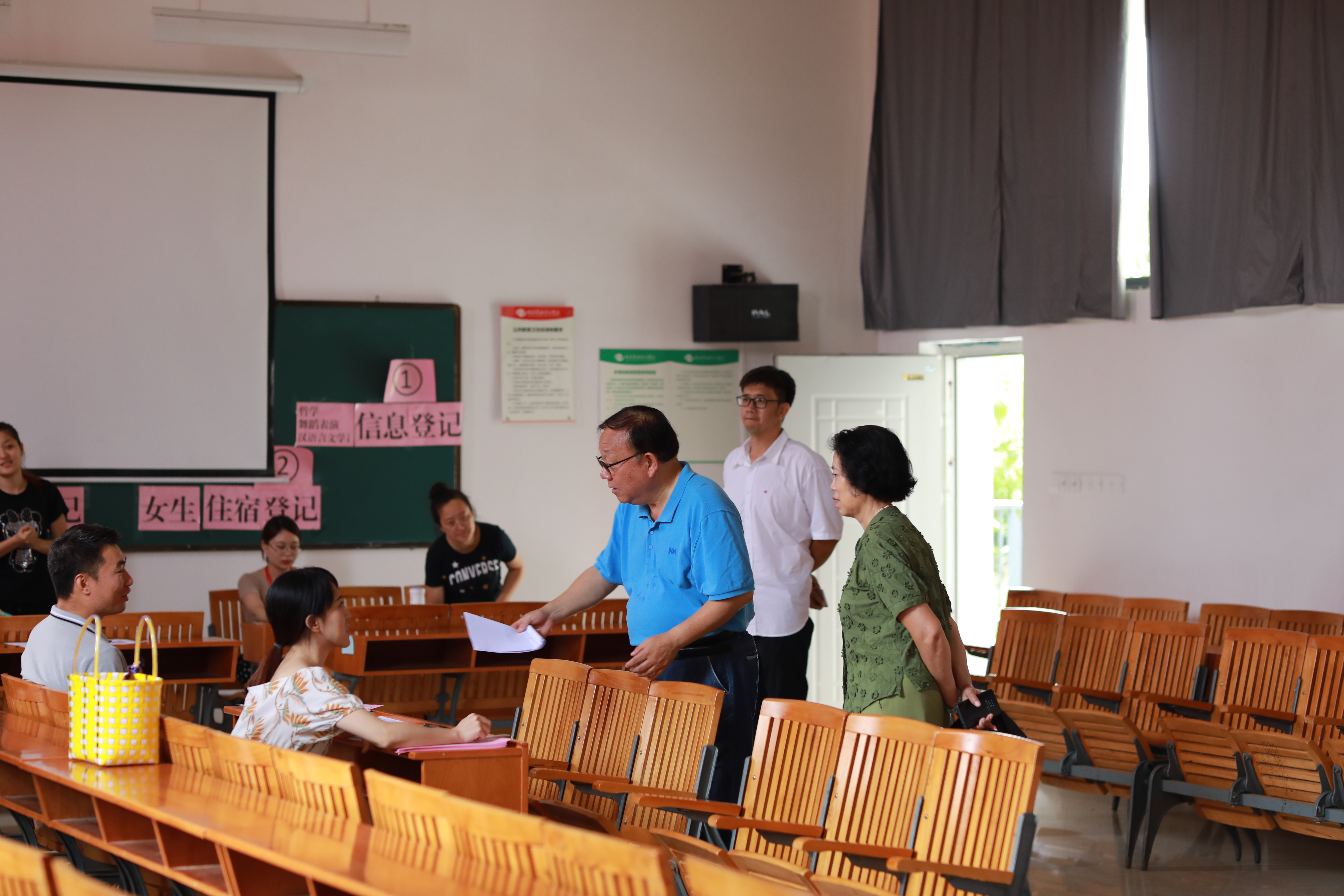 一辆辆校车在保卫人员的引导下有序驶入校门,志愿者们便热情的迎上前,帮家长和新生提行李,并及时引导新生到相应学院接待处。迎新接待点的工作人员和志愿者们耐心答疑解惑,引导新生办理入学通知书审检、住宿等手续。工作人员饱满的热情、周到的服务、有序的安排,给家长和新生留下了深刻而美好的印象。