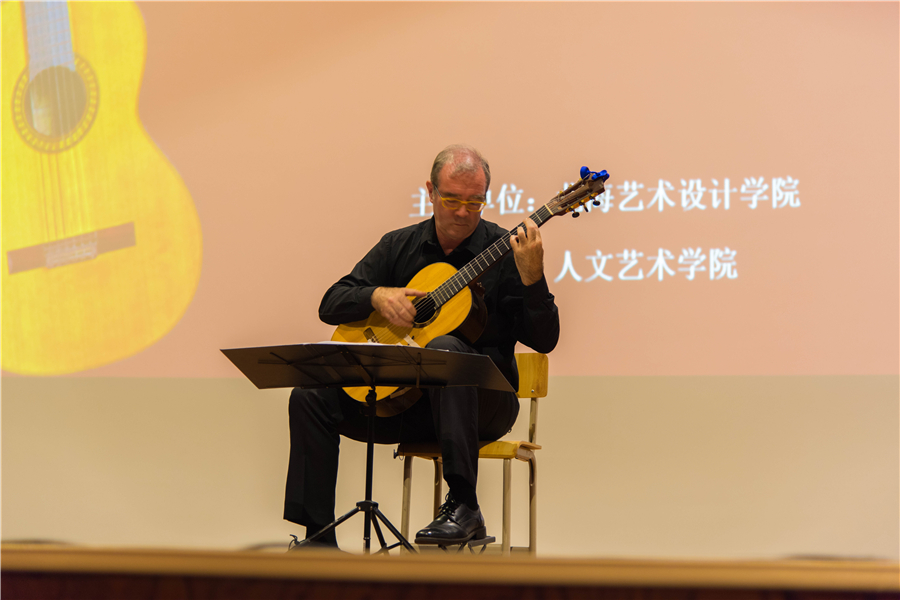 演奏会在埃瑞克·佛朗塞利先生的吉他独奏《音乐节》和《大教堂》中拉开了序幕,节奏明快却又不失哀伤之感,将现场师生带入古典音乐的“梦境”之中,让人身临其境。