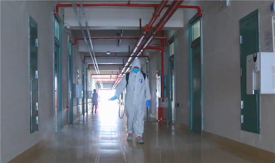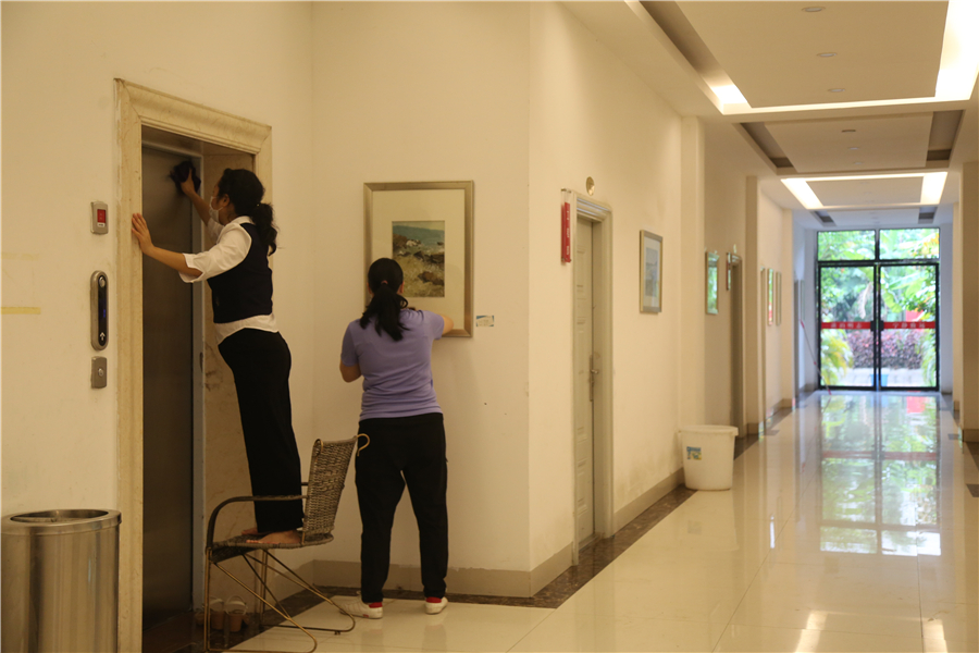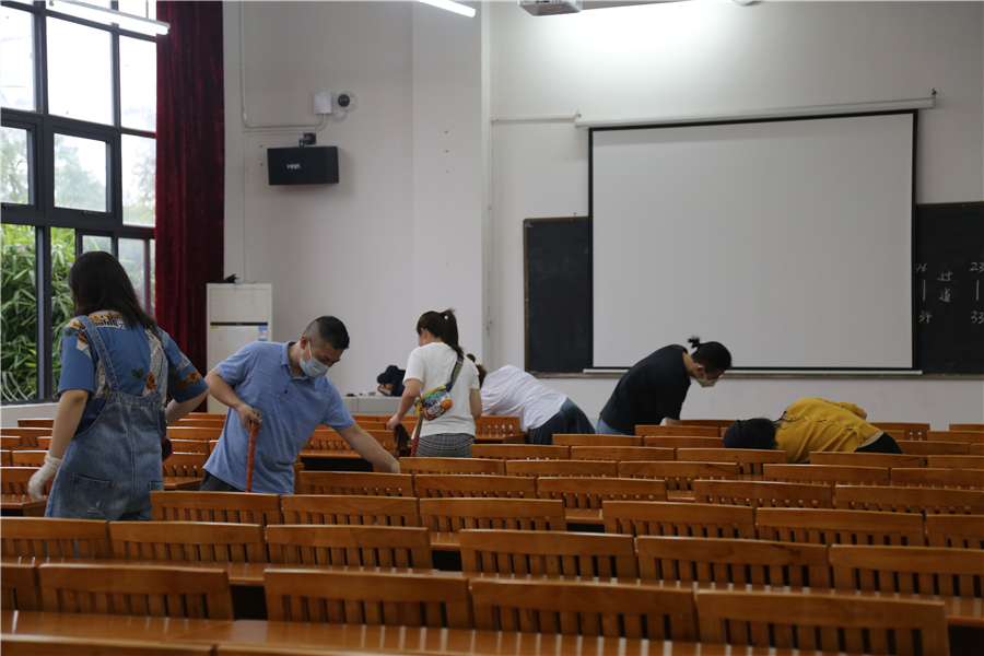 4月20至23日,学校组织全校教职员工对学校办公楼、教学楼、宿舍区、图书馆、机房、食堂、超市、办公楼、隔离室、医务室、校园绿化带等重点区域进行全面卫生清洁。各部门根据任务区域,各司其职,清除杂物垃圾,清洁污渍尘埃;对教学区进行导引标识和宣传海报粘贴;按照防控标准对教室座位进行调整布置。经过全体教职工的通力合作、不懈努力,校园卫生环境显著提升。