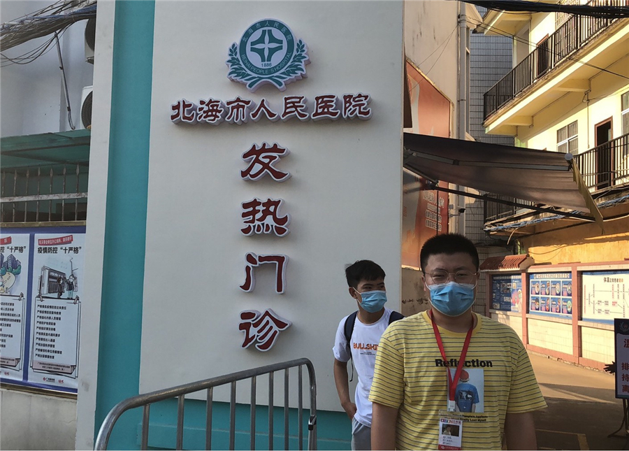刘虎老师说:“党员突击队是责任,更是一份担当!今天迎来了第一批“回家的孩子”,他们归心似箭,我们护其周全。现在是凌晨02:18,我和周斌老师依然坚守在北海市人民医院发热门诊的外面,看到一个又一个“调皮的孩子们”做完检测陆续“回家”,我们不觉得累,反而更多的是一份欣慰。是什么让我如此炽热,是作为一名老师的责任,更是作为一名中国共产党党员大无畏的担当!”