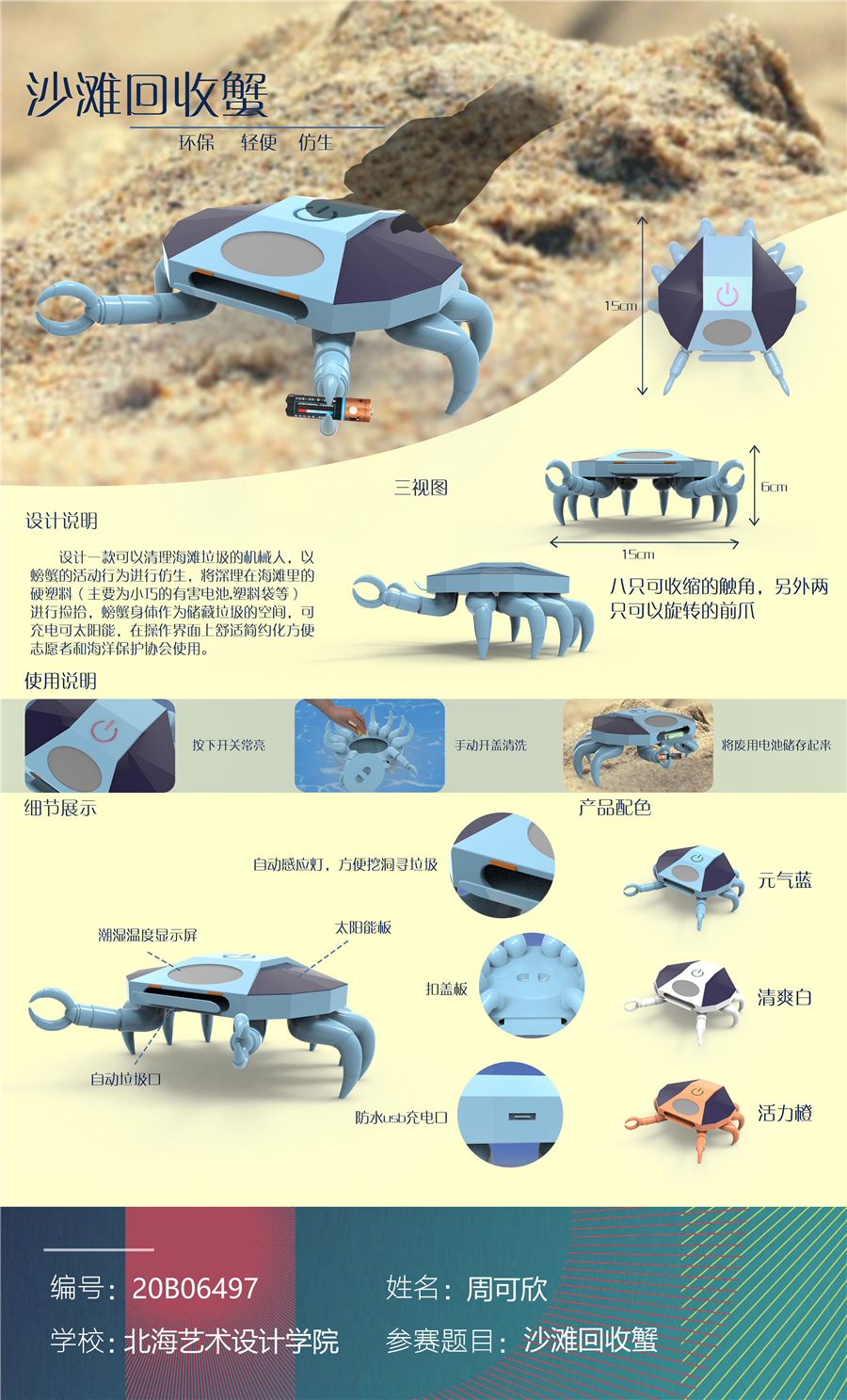 一等奖作品:沙滩回收蟹 作者:周可欣