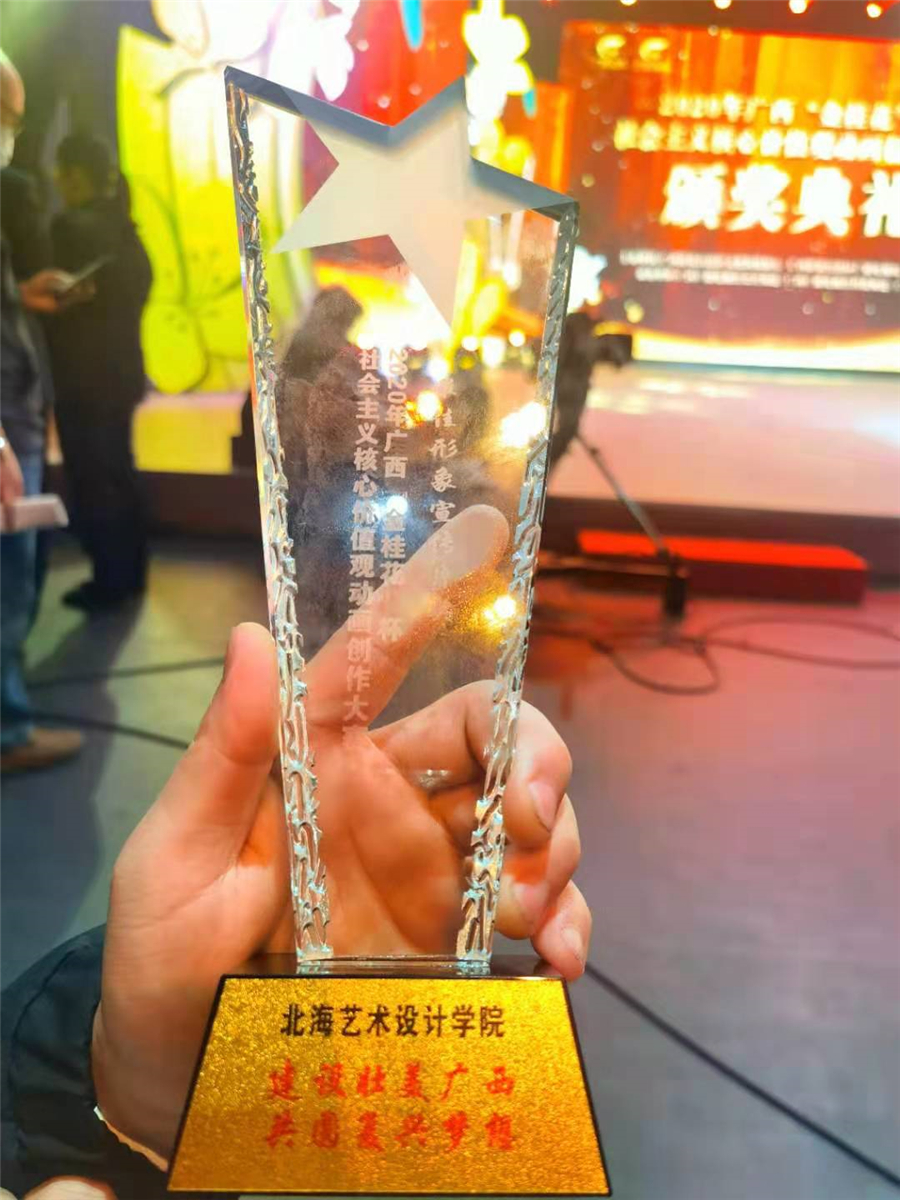 此次大赛以弘扬社会主义核心价值观为主题,自开赛以来,获得了业内各界广泛关注,吸引了来自区内、湖南、湖北、广东、海南等多地动画制作团队、高等院校、社会人士的积极参与,大赛共征集参赛作品300多部。我校动画作品《建设壮美广西,共圆复兴梦想》获得最佳形象宣传片奖。