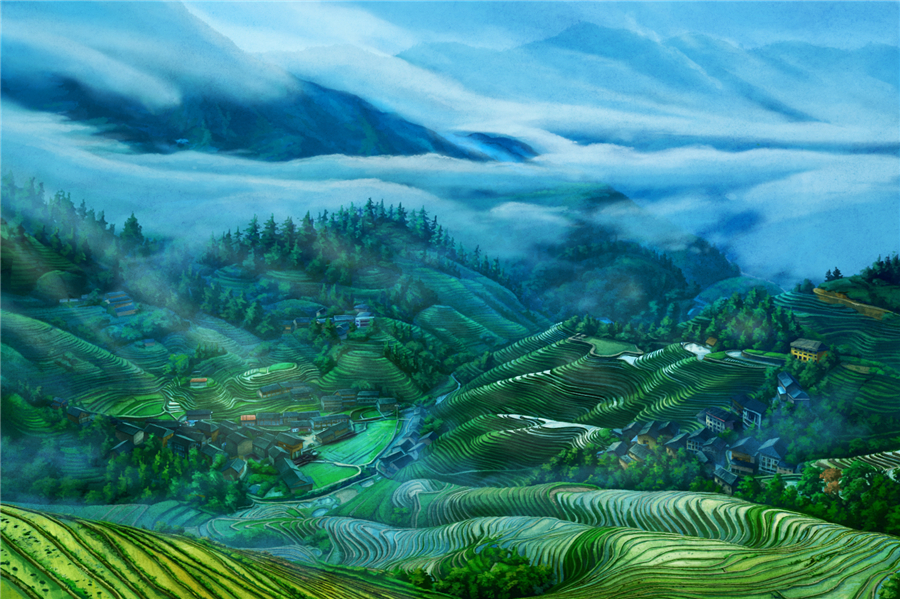 《龙胜梯田》场景设计