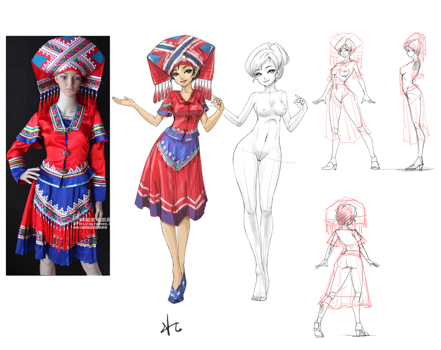 《侗族、彝族》少女形象设计稿
