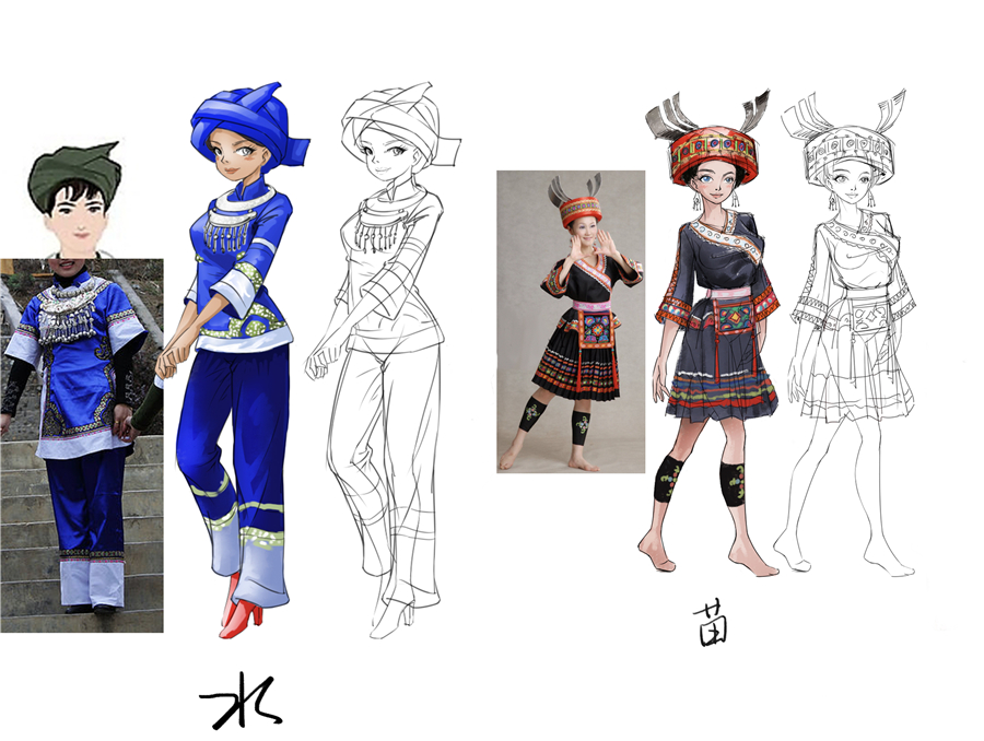 《水族、苗族》少女形象设计稿