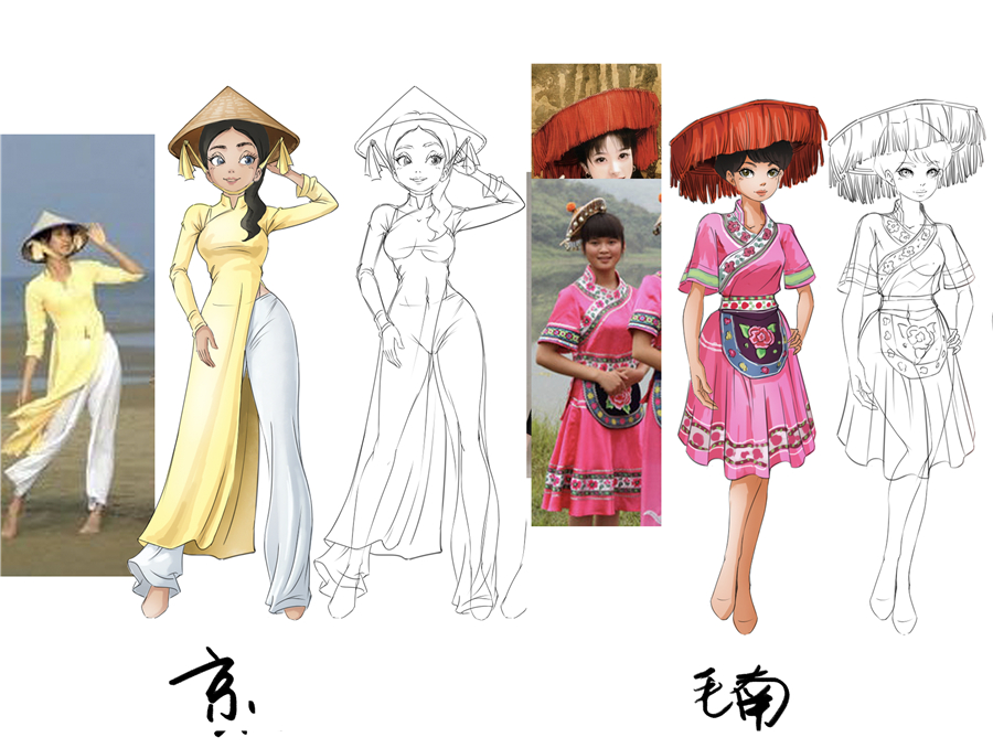 《京族、毛南族》少女形象设计稿