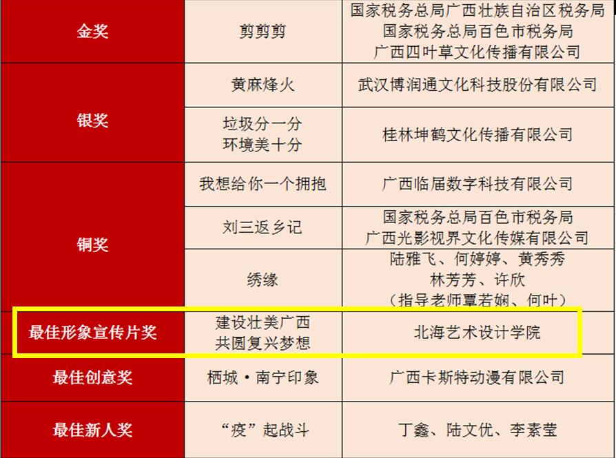 《建设壮美广西,共圆复兴梦想》最佳形象宣传片奖名单