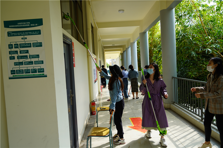 此次开展校园卫生清洁、消杀工作,为安全有序迎接新学期的到来提供了有力保障。下一步,学校还将严格按照上级制定的各项防疫和安全要求做好开学相关工作。(郭 巍、文 玉、宿管中心/摄)