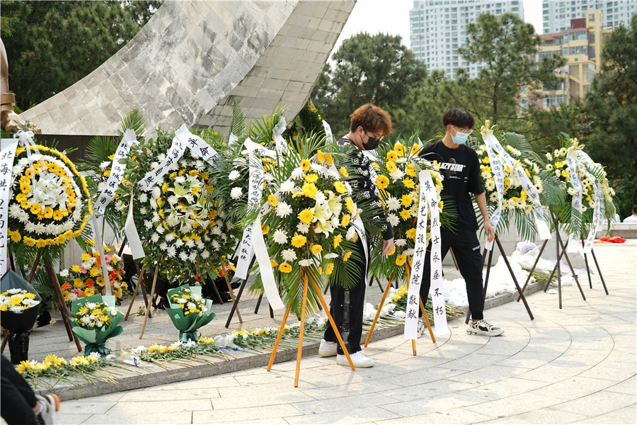 随后全体师生代表默哀一分钟,团员代表向烈士敬献花篮、师生代表向烈士敬献鲜花,表达了对烈士的缅怀和敬意。