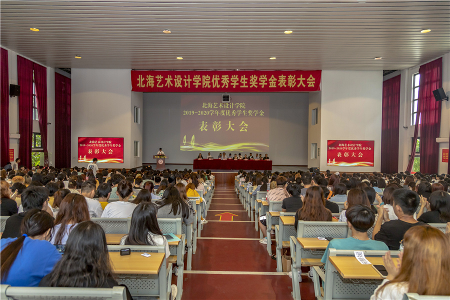 大会在雄壮的国歌声中拉开序幕,党委书记张阳宣读了表彰决定。与会领导依次为获得国家奖学金、国家励志奖学金、自治区人民政府奖学金、北海艺术设计学院优秀学生奖学金获得者颁奖。