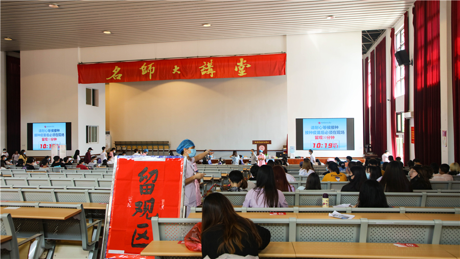 截止5月15日,在校内临时接种点已完成7600余人新冠病毒疫苗接种。(张文桦、李斯玥、张包菡/摄)