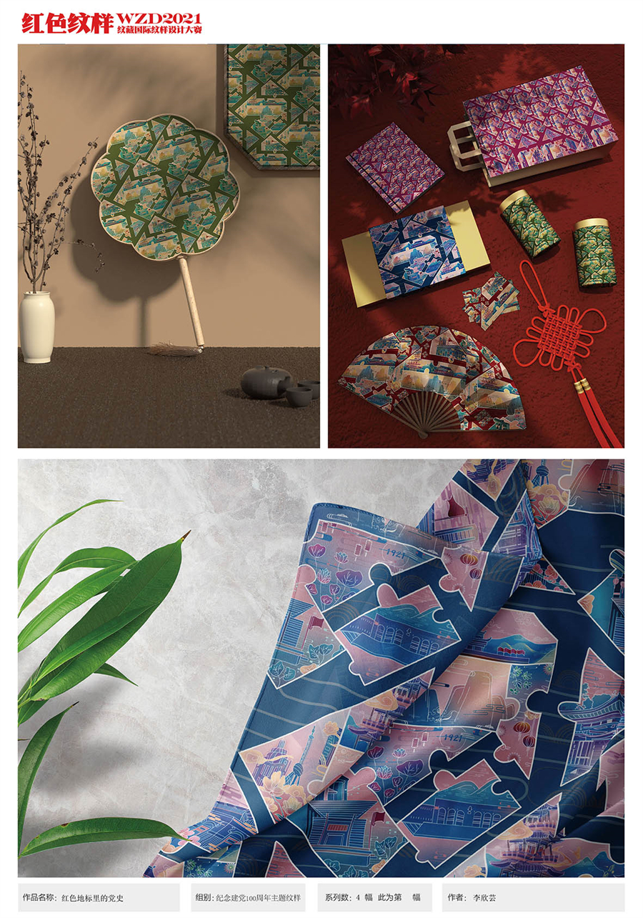 喜报||我校学生作品《红色地标里的党史》获得第二届纹藏国际纹样设计大赛银奖