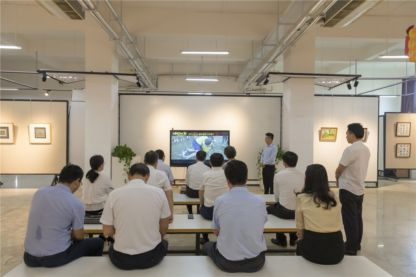 刘小明观看了教育学院舞蹈表演专业学生排练的党史题材舞蹈《八女投江》、学前教育和艺术教育专业教学汇报展、《中国共产党百年历程导读》展示展板、环艺学院红色元素模型设计展及图书馆党史阅读角,听取了动画学院为迎接建党100周年而制作的动画片《半条被子》和网络电影《唱给海的歌》制作进度情况,深入了解我校开展党史学习教育和加强意识形态阵地建设情况。刘小明对我校党史学习教育的做法和成效给予了充分肯定,并对学校提出要创办西部一流艺术设计学院、建成民办高校党建工作典范的要求。