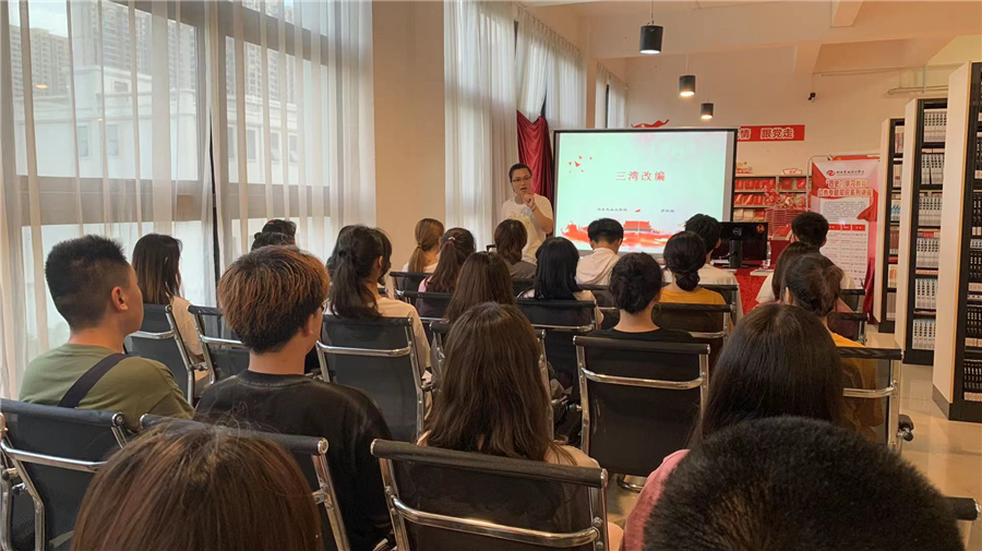 “四史”学习教育红色专题知识系列讲座是马克思主义学院与图书馆落实中央“四史”学习教育和党史学习教育要求,开展的主题鲜明、极具特色的活动,这次系列讲座的听众有来自各个二级学院的入党积极分子、预备党员、老师和图书馆的全体工作人员,受众师生数百人。