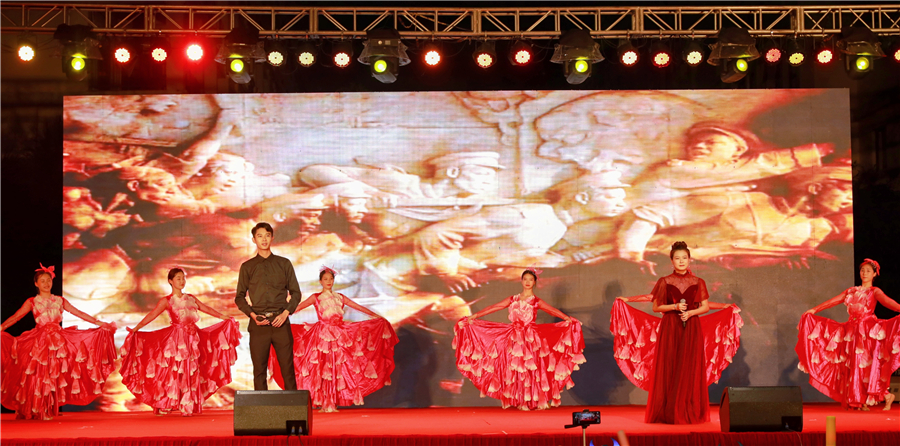 舞蹈表演1903班的学生带来《战地山花别样红》,带我们回到了过去的峥嵘岁月,感受到先辈们前赴后继牺牲的伟大精神。男生小组合唱《把一切献给党》,清朗的歌喉表达了中华儿女对党的深切热爱。 舞蹈《无名的功勋》,场面宏伟震撼,伴随着炮响轰隆的音效,让我们回忆起战乱和无名英雄崛起的年代,为这些无名的功勋致敬。 话剧社带来的《抗日英雄》,那些英勇无比的战士们,那些难以言喻的爱国情感,都深深地刻在了每个中华儿女的骨子里,令人动容。