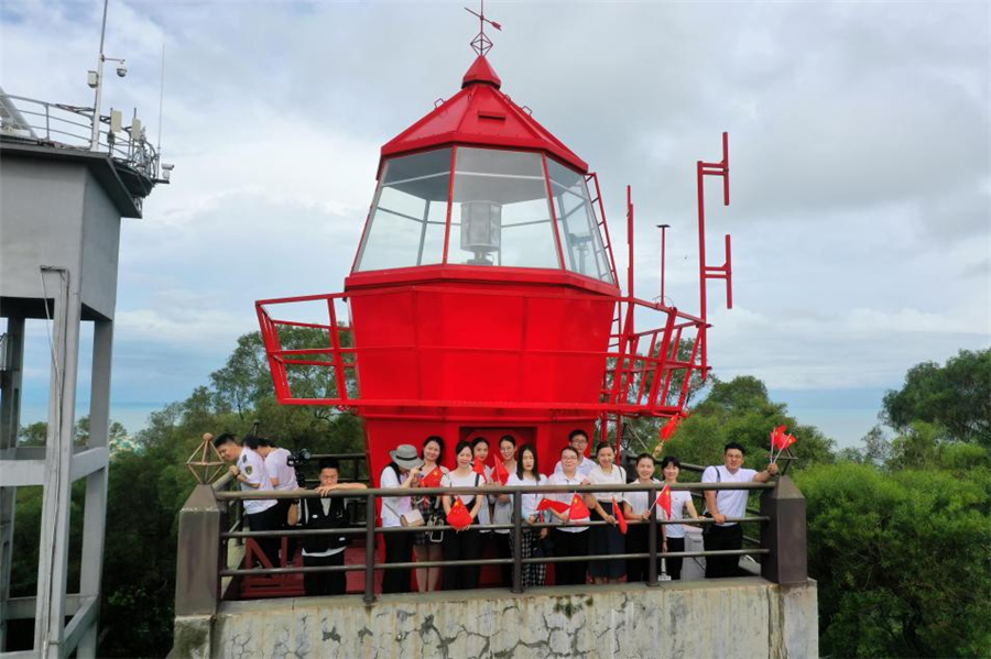 在北海市冠头岭灯塔,北海航标处工作人员带领前来体验学习的党员了解北海灯塔的建设历史和守护故事,并带领大家沿着护塔小径了解新中国成立以来几代灯塔守护人的事迹。现场,党员们在灯塔下重温入党誓词,齐唱《没有共产党就没有新中国》,用嘹亮的歌唱激励广大党员学习灯塔守护人坚守岗位、默默奉献的敬业爱岗精神,努力成长为照亮学生成长道路的灯塔。