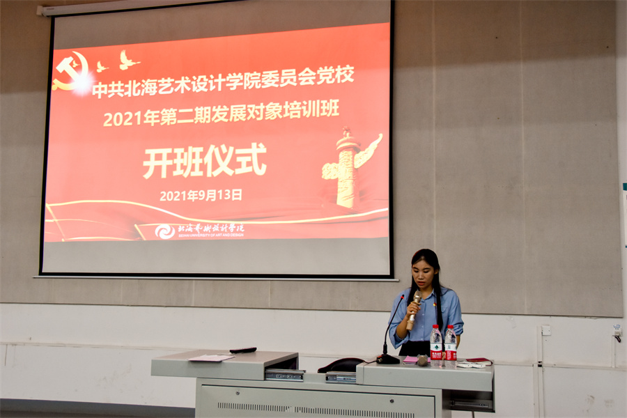 开班仪式在庄严的国歌声中拉开帷幕。视觉传达专业1915班龙睿杰同学发言,与大家分享了他的入党初衷。他表示,在父亲的影响下,他认识到了共产党员矢志坚守,艰苦奋斗的精神,坚定了他入党的决心。同时,作为一名少数民族的学生,从小沐浴在党正确的宗教民族政策的光辉下,使他切实感受到了党对边疆少数民族地区人民的殷切关怀,立志要感党恩、听党话、跟党走,并呼吁广大学员要积极参加志愿服务活动,树立良好的思想品格,把为人民服务同求实精神联系起来,努力践行党的全心全意为人民服务的根本宗旨。