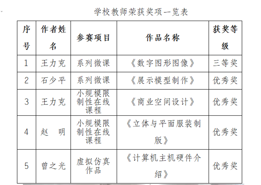 学校教师荣获奖项一览表