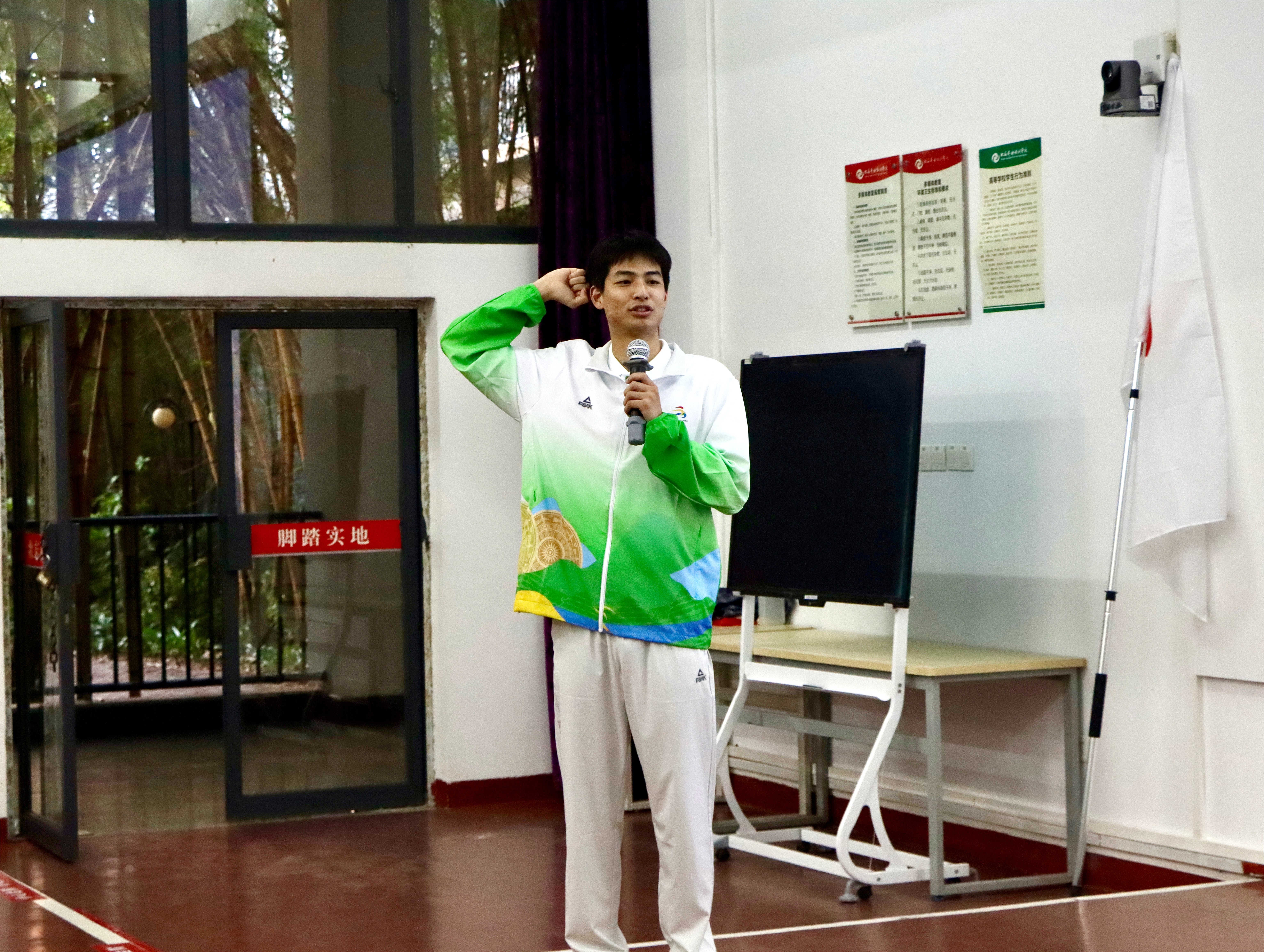 接着对全体青年志愿者提出三点希望:一是希望大家珍惜荣誉,不忘初心。志愿者应保持高昂的热情、积极的服务态度,认真做好志愿服务。二是希望志愿者们认真学习,认真工作。本次活动是来之不易的学习机会,在任何时间地点都要虚心向周围的人学习,学习赛场上运动员们拼搏的精神。三是希望大家注意安全。一方面是注意自身的安全,另一方面是注意在场人员的安全,发现问题及时反馈,最后预祝本次志愿活动取得圆满成功。
