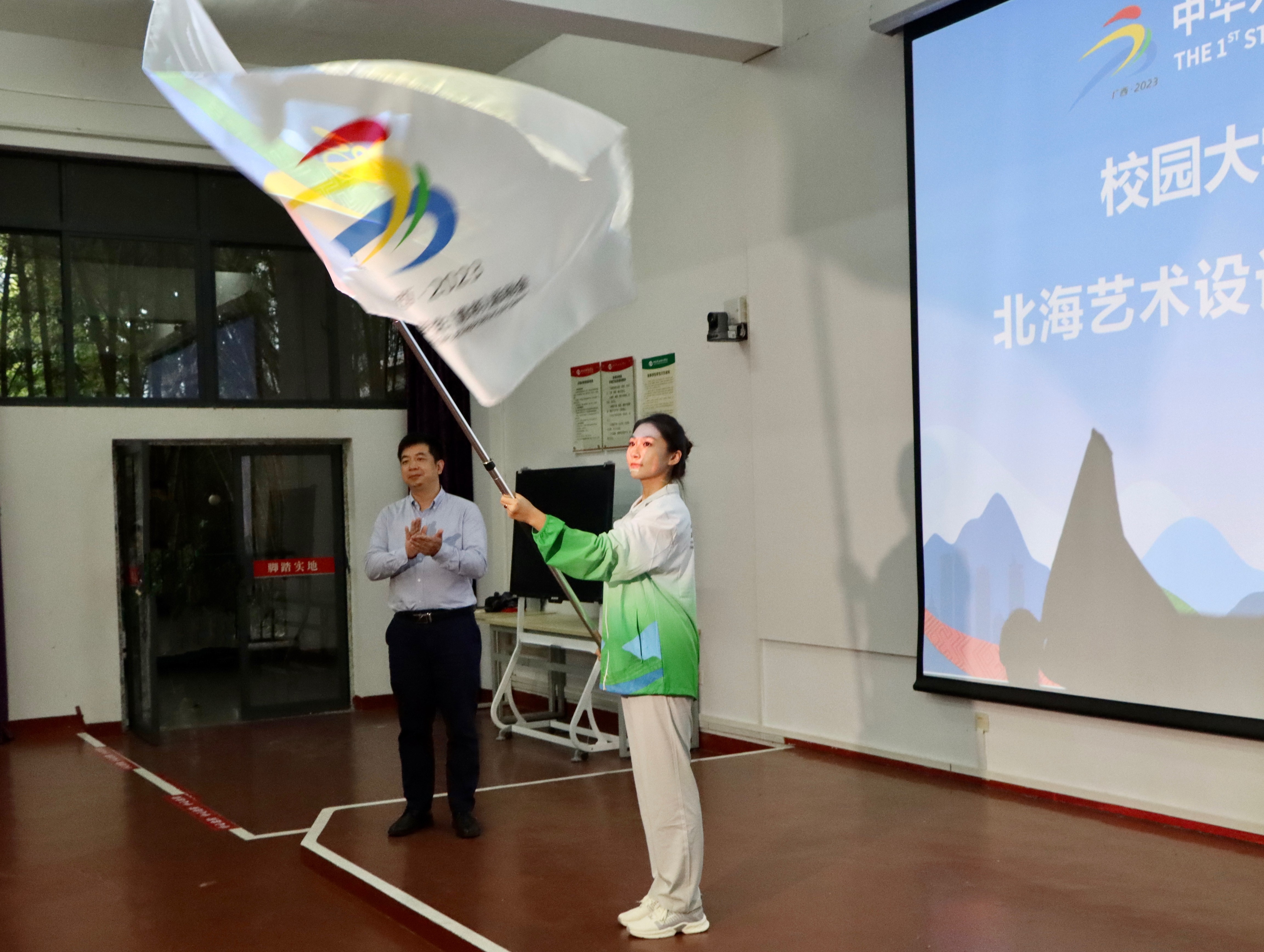 2023年11月1日,第一届全国学生(青年)运动会足球比赛志愿者出征仪式在北海艺术设计学院伦理楼107举行。出席本次出征仪式的领导有第一届全国学生(青年)运动会志愿者经理、市旅游文体竞体科局科长陈瑛,我校党委副书记彭仁,团市委宣传部负责人叶婵,以及全体志愿者和带队老师们。