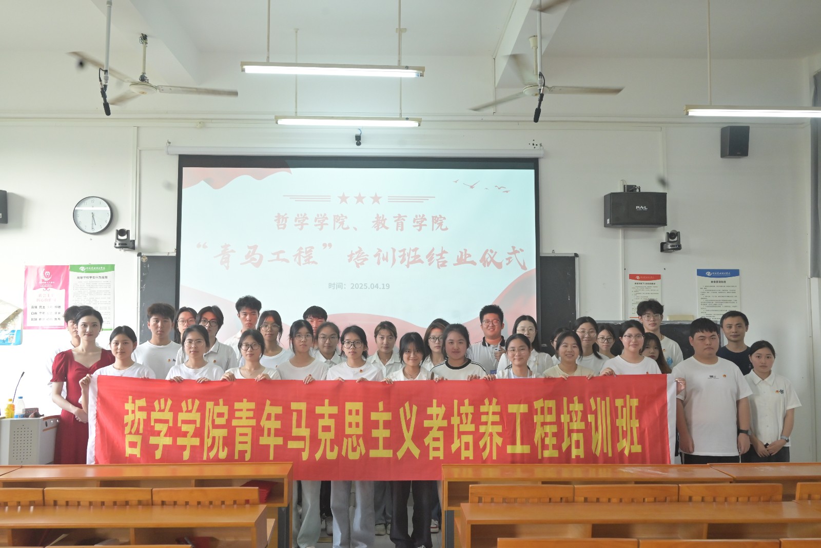 2025年4月19日,我校教育学院、哲学学院于东校区觉悟楼 402教室举办的第一期青年马克思主义者培养工程结业仪式圆满落幕。哲学学院党支部书记谢伟、教育学院团总支指导教师陈美霖出席结业仪式,各学院团员及学生干部共同参加活动。