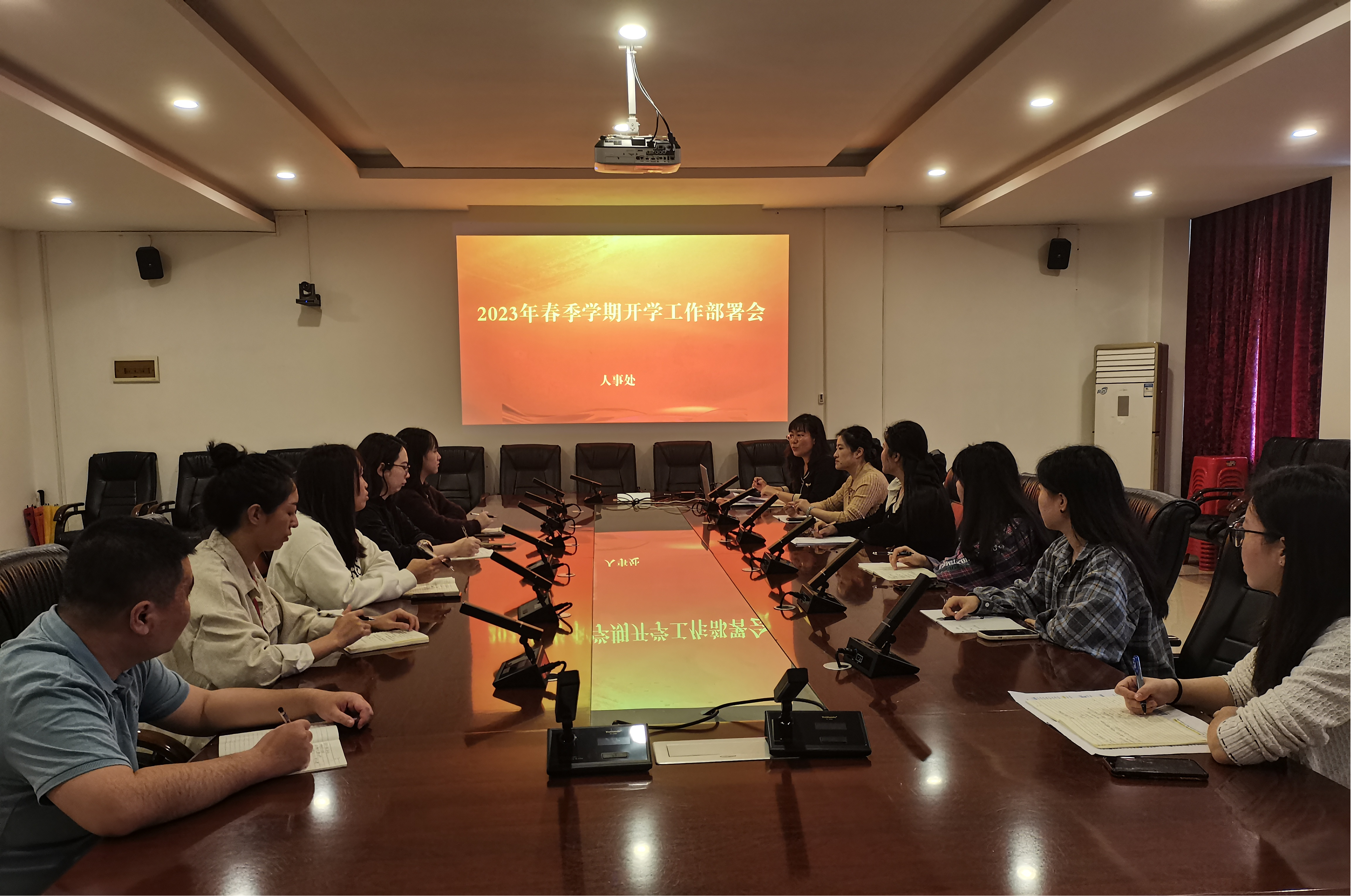 2月13日上午,人事处在行政楼212会议室召开新学期工作布置会,全体工作人员参会,会议由人事处处长屈志鑫主持。