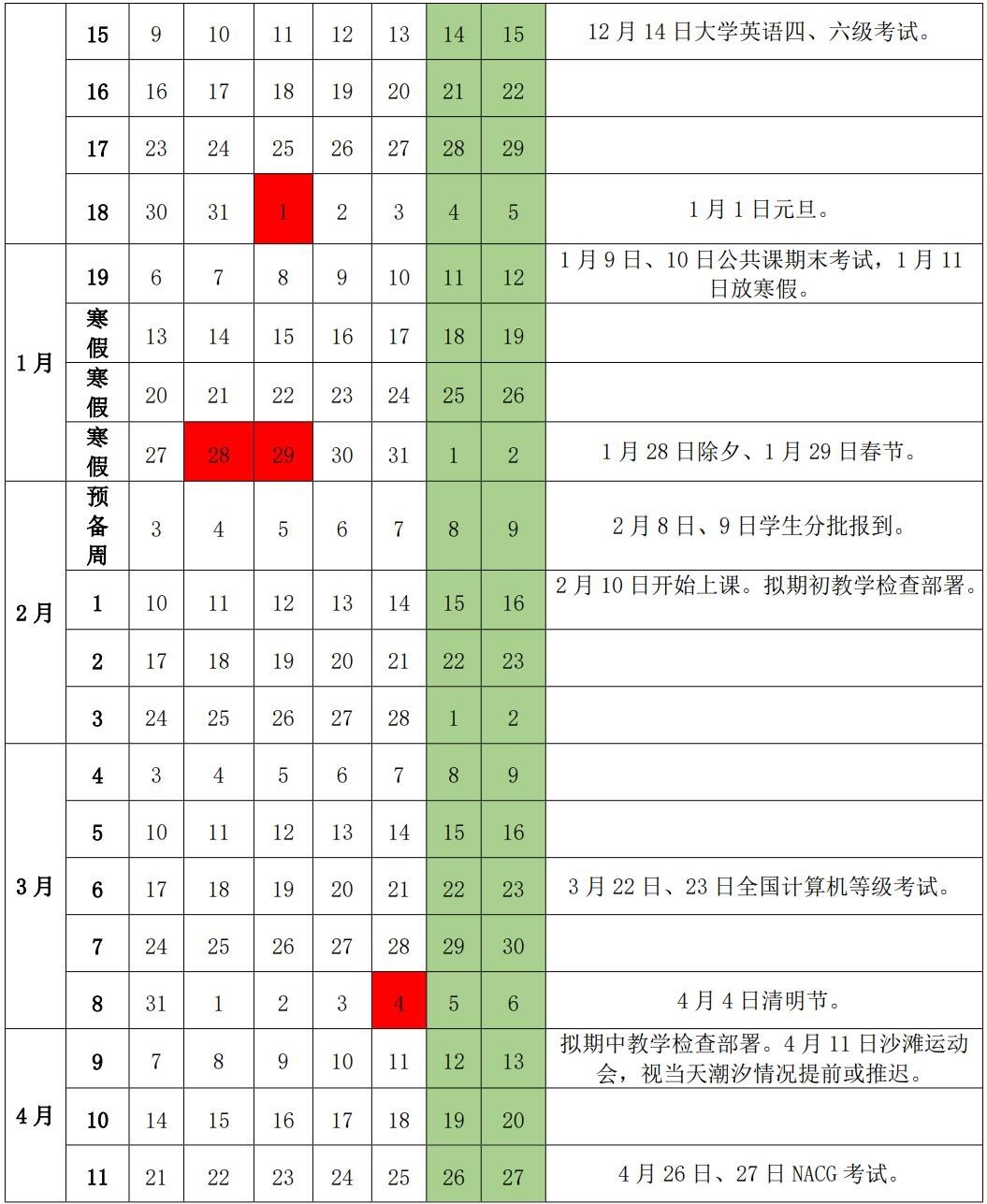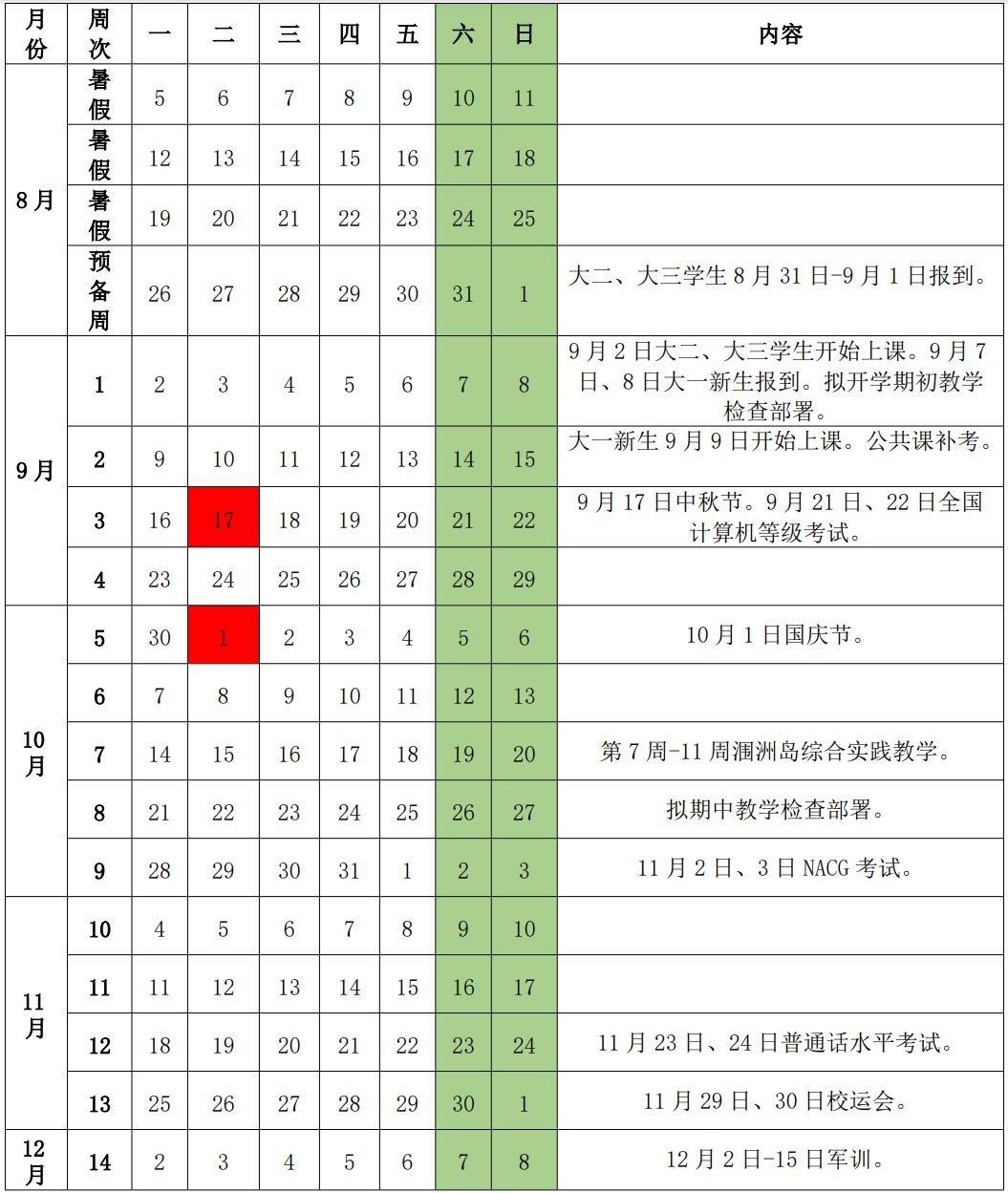 北海艺术设计学院2024-2025学年校历
