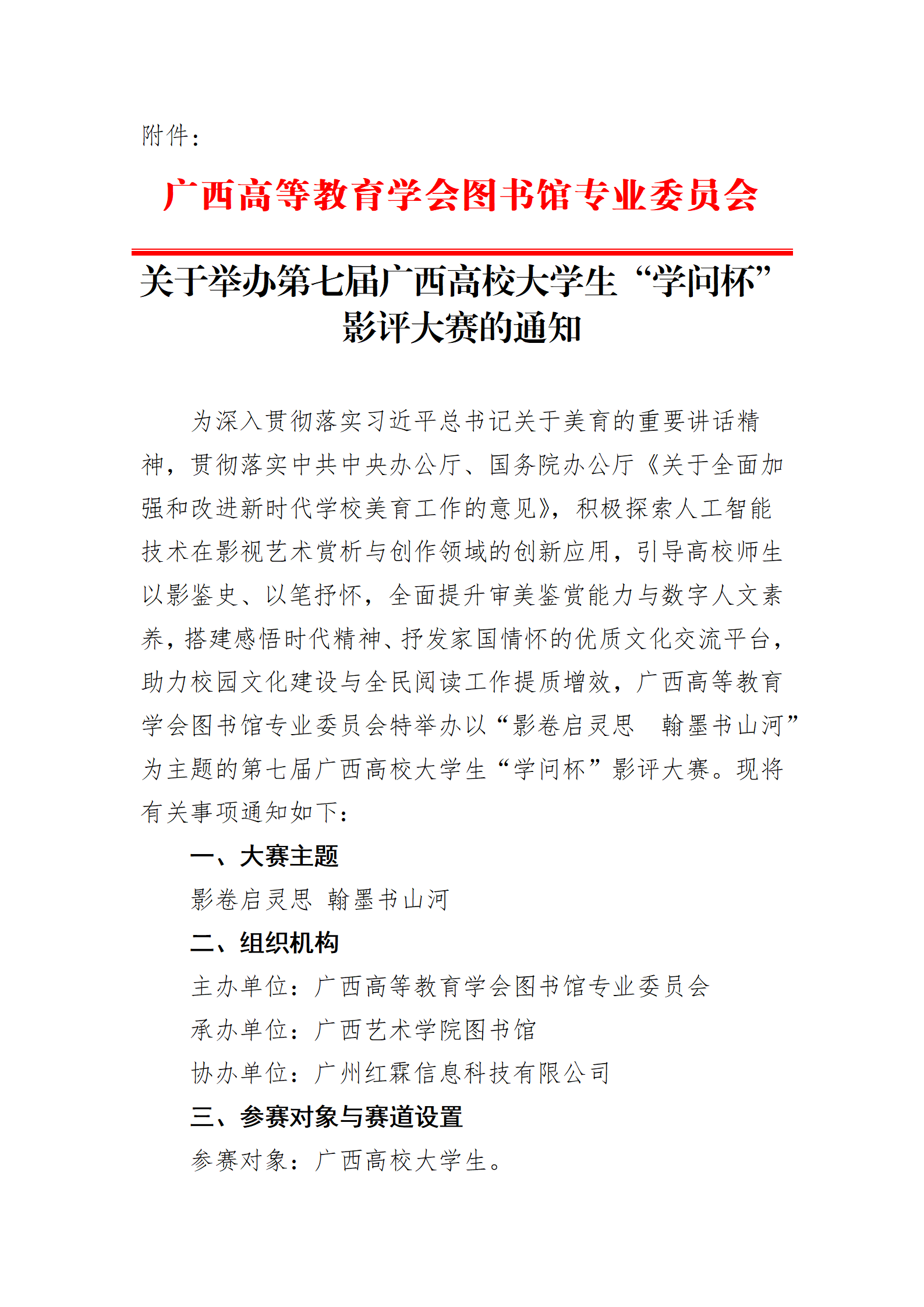 图书馆关于组织参加第七届广西高校大学生“学问杯”影评大赛的通知