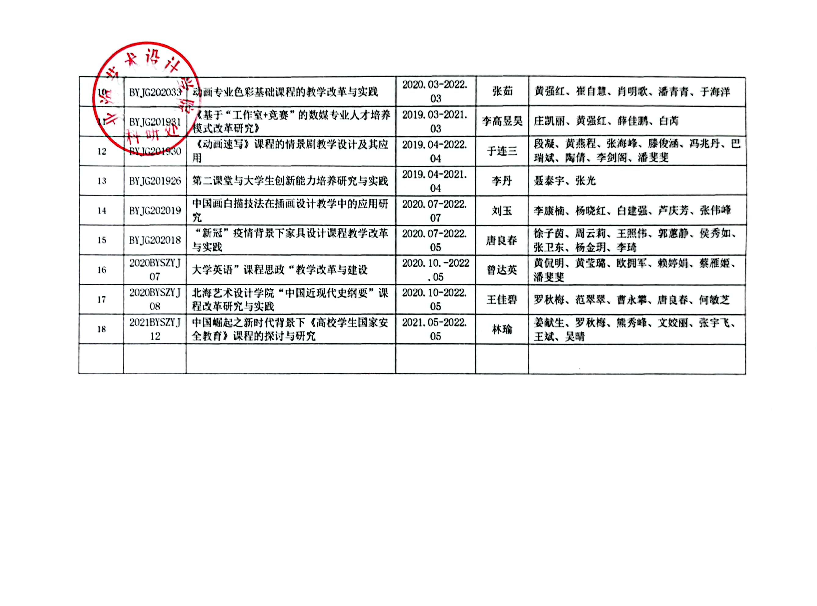 北艺科研〔2022〕15号 关于2022年度校级科研课题/项目立项评审结果的通知