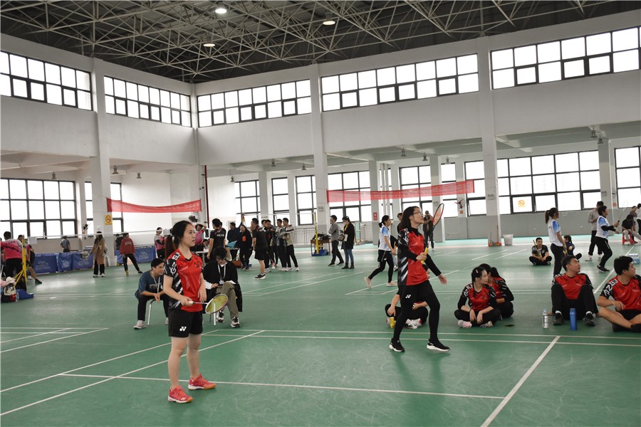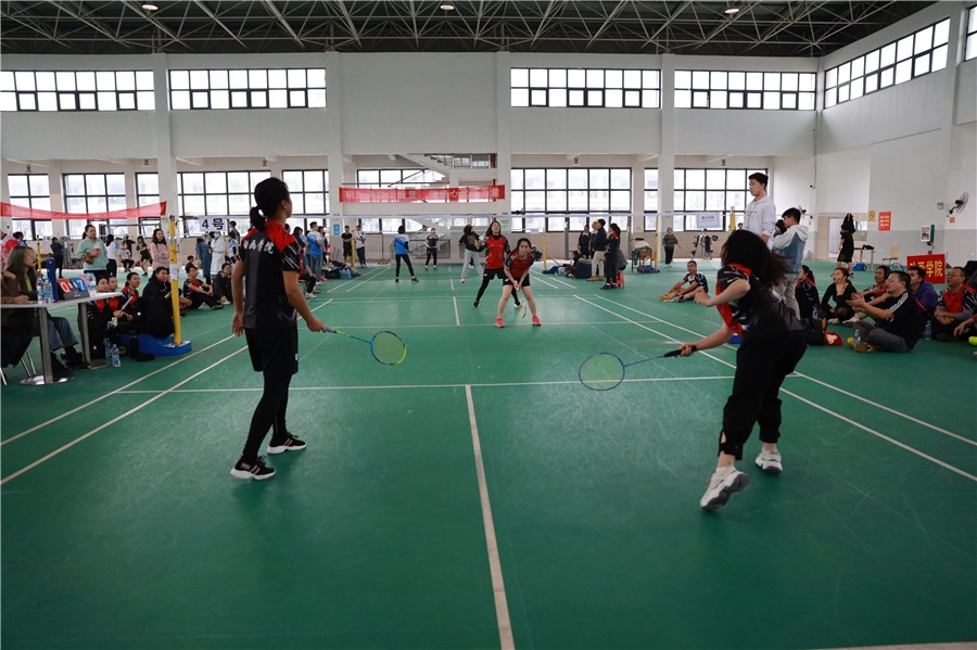 下午的羽毛球比赛分为女双、男双、混双、采用三场二胜制,每场为三局二胜制比赛分两个阶段进行,第一阶段两个小组进行单循环赛决出名次,第二阶段由小组赛前两名交叉进行,最后的决胜阶段比赛异常精彩,双方稳扎稳打,运动场上加油声、欢呼声、赞叹声、欢笑声此起彼伏。