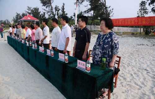 上午8:00,运动会开幕式准时开始,开幕式由学院彭仁副院长主持。出席本次运动会的领导有学院党委书记贺祖祯,常务副院长张建虹,副院长张跃、林秀琪、王斌,以及各二级学院领导和各处室负责人。开幕式上,学院副院长林秀琪致开幕词,王竞毅同学和王瑞轩老师分别代表运动员、裁判员宣誓;学院党委书记贺祖祯同志鸣放比赛第一枪并宣布第十五届沙滩运动会暨第十一届沙雕比赛开幕。