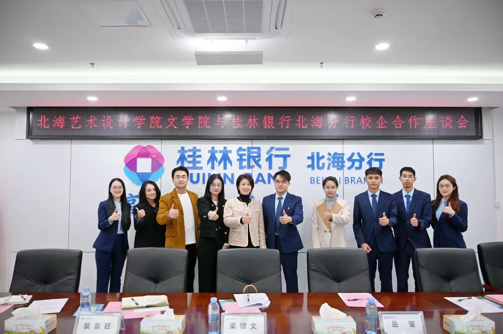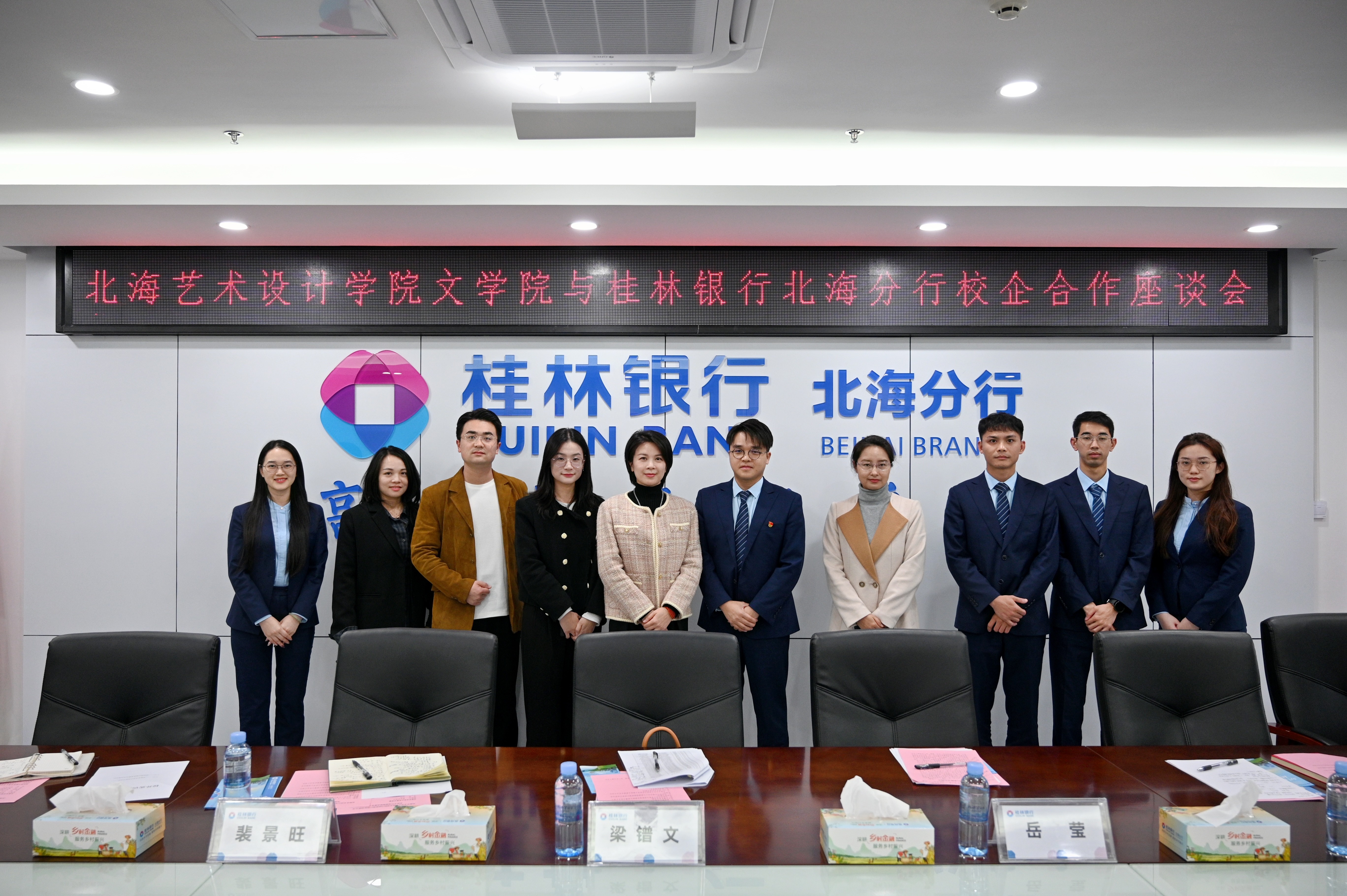 为深化产学研合作,助力学生高质量就业,2025年3月18日上午,我院领导班子带队赴桂林银行北海分行开展“产教融合·协同育人”专题调研。本次调研由我院常务副院长梁镨文带队,党支部书记岳莹、副院长蔡森、裴景旺以及我院办公室主任包涵随行。