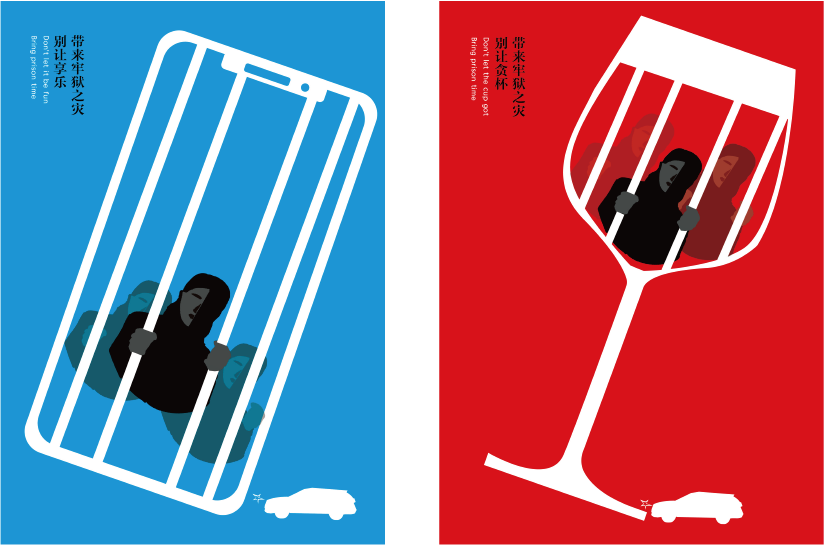 海报类:优秀奖 《交通安全系列作品-安全驾驶,勿酒驾,勿行车看手机》