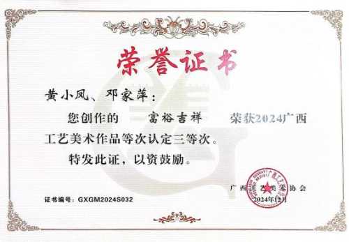 2024年作品《富裕吉祥》入选2024广西艺术作品展览优秀作品三等次