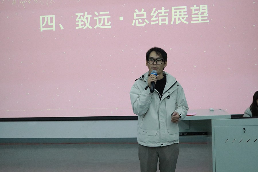 交流会最后,覃轶科老师作总结发言。他充分肯定了高年级同学的出色表现,鼓励全体学生以优秀朋辈为榜样,将经验转化为行动,在互学共进中成长。