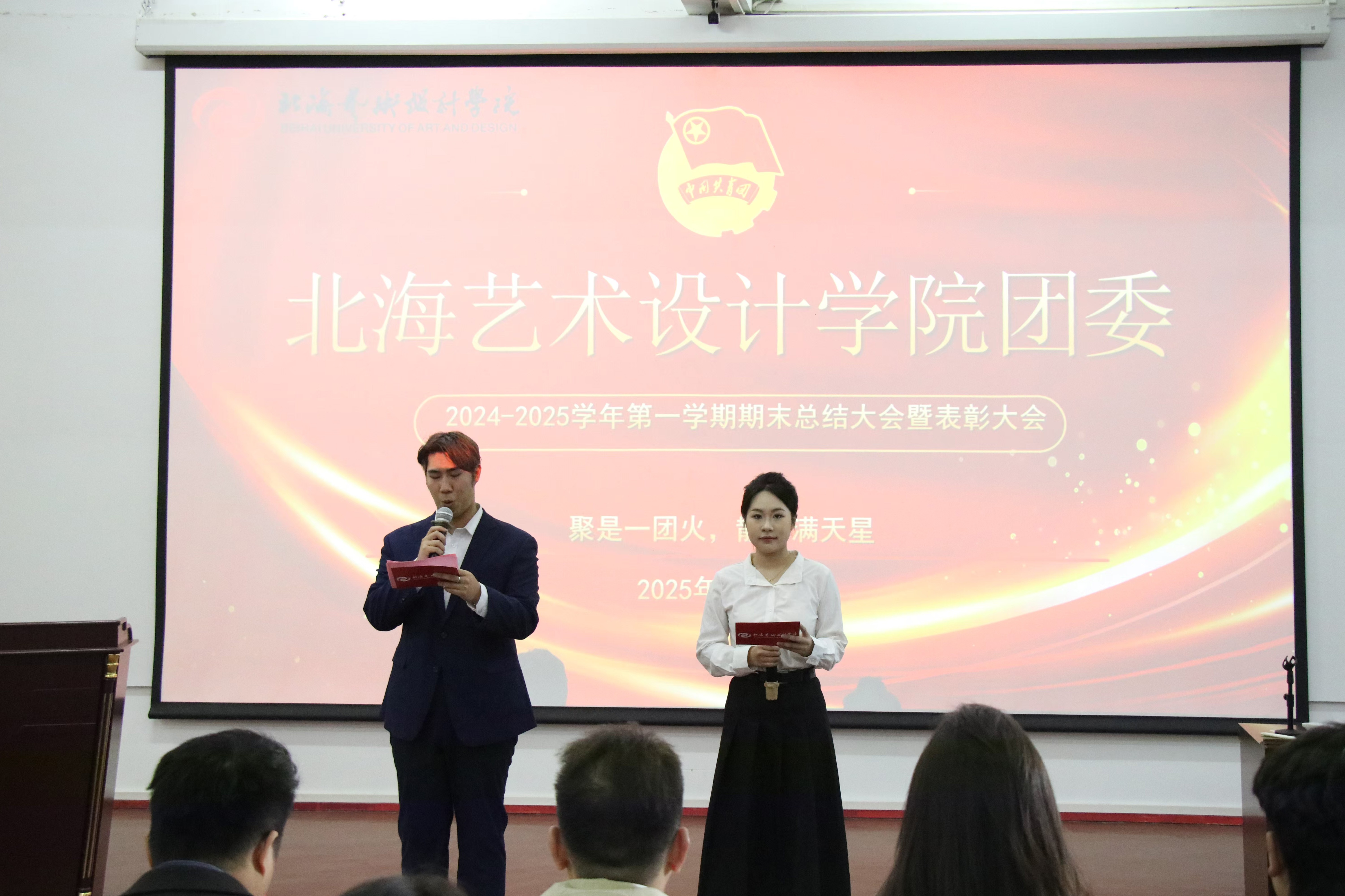 大会共分四个议程:奏唱团歌、各部门汇报、领导讲话与颁奖仪式。
