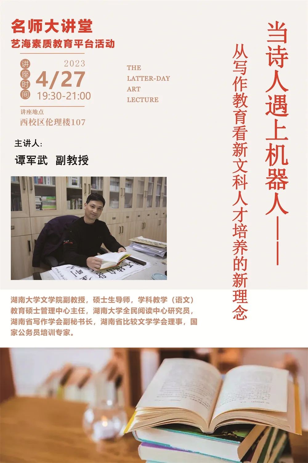 讲座预告|谭军武《当诗人遇上机器人——从写作教育看新文科人才培养的新理念》
