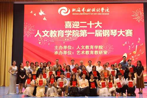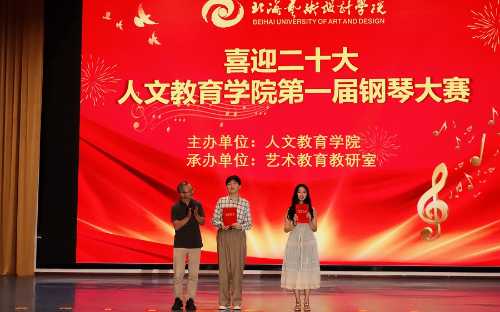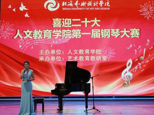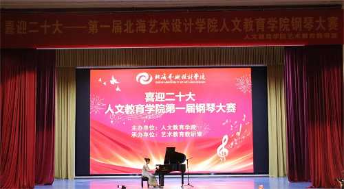 金秋十月,硕果累累。2022年10月7日19时,由北海艺术设计学院人文教育学院主办,艺术教育教研室承办的“喜迎二十大--人文教育学院第一届钢琴大赛”,在西校区大礼堂隆重举行。北海艺术设计学院副校长王斌,人文教育学院党总支书记刘承初,院长熊秀峰,副院长李水亮,副院长李谦,党总支副书记邓欢,应邀出席大赛。