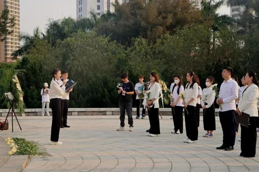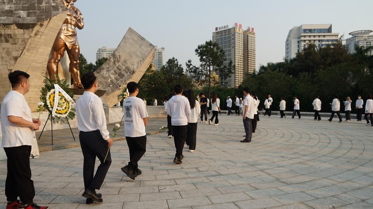 为深入学习贯彻党的二十大精神,对学生进行爱国主义和革命传统教育,缅怀革命烈士,教育学生不忘革命先辈,传承和弘扬伟大的爱国主义精神,树立远大理想,磨炼顽强的意志,练就过硬的本领,培养学生的集体主义和组织纪律观念,北海艺术设计学院于4月4日在北海市长青公园烈士碑组织开展“我们的节日·清明祭英烈--不忘初心,强国有我”传承红色基因主题教育活动。