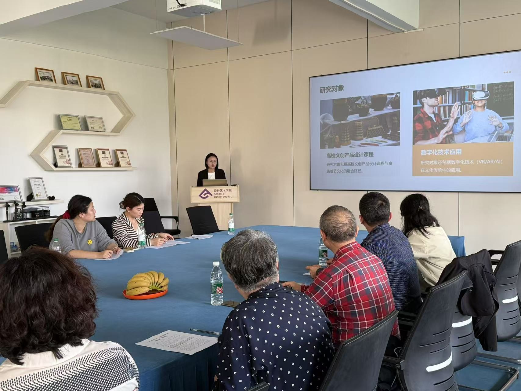 其中2025年新立项的各课题组主持人对课题的选题依据、研究内容、思路方法、创新之处、预期成果、研究进度、组织分工等情况,做了汇报讲解。各课题组邀请的专家们就以上内容,结合实际情况,分别给予了宝贵的建议。例如,李建启教授针对陈妮老师的高校创新创业方向的课题,提出了“研以致用”的观点,认为课题研究要为实践服务,能够落实到教学层面,指导改革实践。焦宝娥教授针对我校服装学院郭单园老师的课题《文化引领,数智赋能,服装产业化融合新路径》中提出建设储存有广西传统民族服饰面料,图案数据库的想法给予了认可,并认为数据库的建设对国家服饰文化的促进具有一定的推动作用。