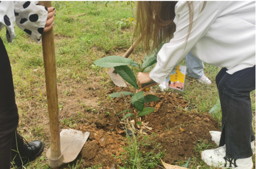 来到空地上大家一片忙碌!刨开梦想的土,挖开希望的坑,种下一颗美好的树苗,孕育未来的精彩。绿化冯师傅亲自指导。严格的指导大家掌握好树坑的尺度,培土施肥的方法,最后还不忙提醒大家浇水要浇透,每天都要浇水。
